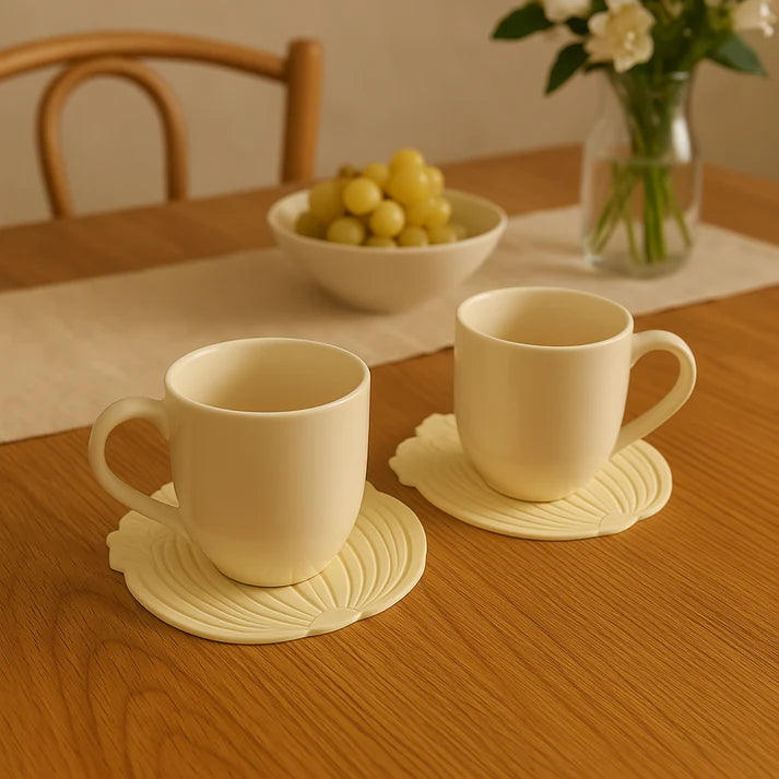 Add a touch of style and protection to your tabletops with the 2-Piece Anti-Slip Silicone Coaster Set. Crafted in a charming leaf-inspired pattern, these premium silicone mats are designed to keep your surfaces safe from heat, moisture, and stains while elevating the look of your tea or coffee setup.